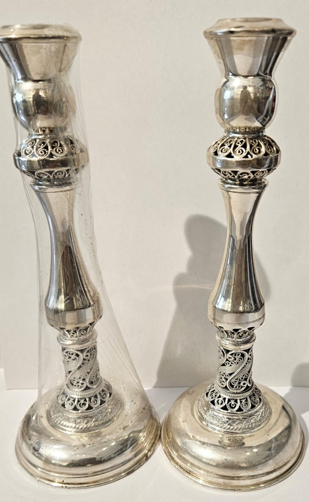 פמוטים מכסף טהור בעיצוב אתני ייחודי,
