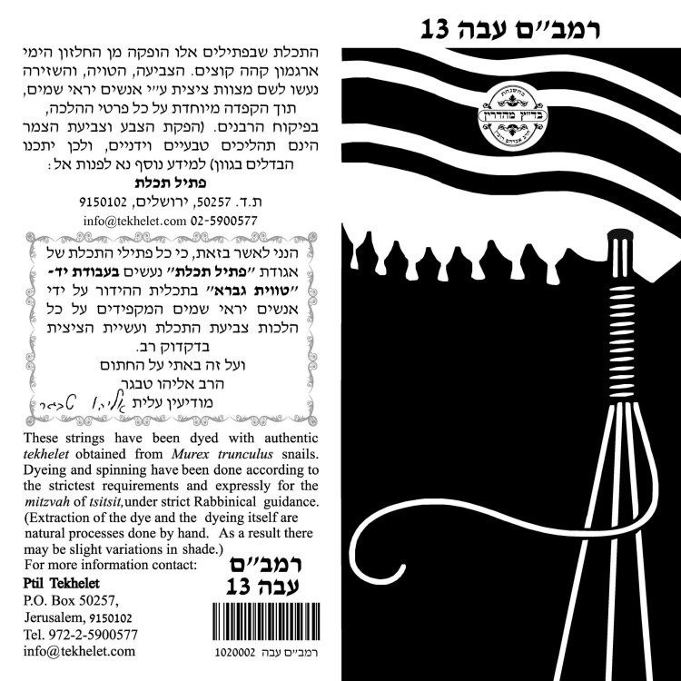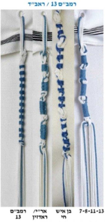 רמב”ם: חוט 1 תכלת מתוך 8 – מתאים לקשור קשירה ספרדית, ב-7 חוליות ו – 13 חוליות.